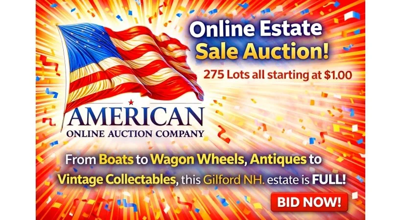 🇺🇸 AMERICAN ONLINE AUCTION COMPANY 🇺🇸 “Bringing you the BEST Online Estate Auctions in New Hampshire!” 🇺🇸 These are amazing Online Only Auctions that starts at $1.00 with NO RESERVES! AND REMEMBER: Everything starts at only $1.00 and each item will sell to the highest bidder REGARDLESS OF PRICE! 🇺🇸 These are true NO RESERVES Online Auctions! 🇺🇸 Come be one of 23,000+ people that are following us on Social Media! 🇺🇸 Thank you for your support! 🇺🇸 AMERICAN ONLINE AUCTION COMPANY 🇺🇸 🇺🇸 "The Most Awarded Estate Liquidator in New Hampshire" 🇺🇸 🇺🇸 Call now to get your sale on the books! 603 - 777 - 7817 🇺🇸 We book VERY FAST in April / May